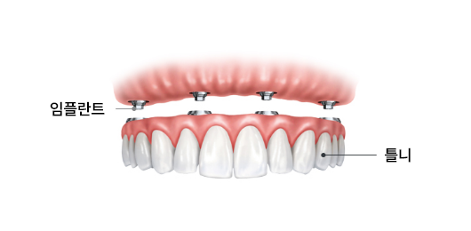 턱뼈에 인공 치근을 심는 것으로